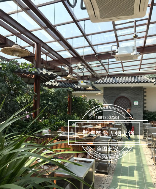 在這里吃火鍋不用擔心油煙味四處彌漫,因為揚之阿李火鍋店是一家智能無煙火鍋店,它選用了韓博智能無煙火鍋設備,吸油煙率高達99%,整個餐廳、包廂都無油煙味熏擾,只需盡情享受美景和享受佳肴。