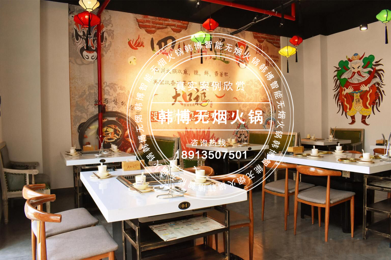 用餐環境也都是經過特別設計的,為的就是營造好的就餐環境,有好的就餐環境,才會有更多的顧客上門。”另外,店內全部采用了韓博無煙火鍋,高達99%以上的火鍋油煙全部被吸走,吃完火鍋身上再也沒有一點火鍋味!