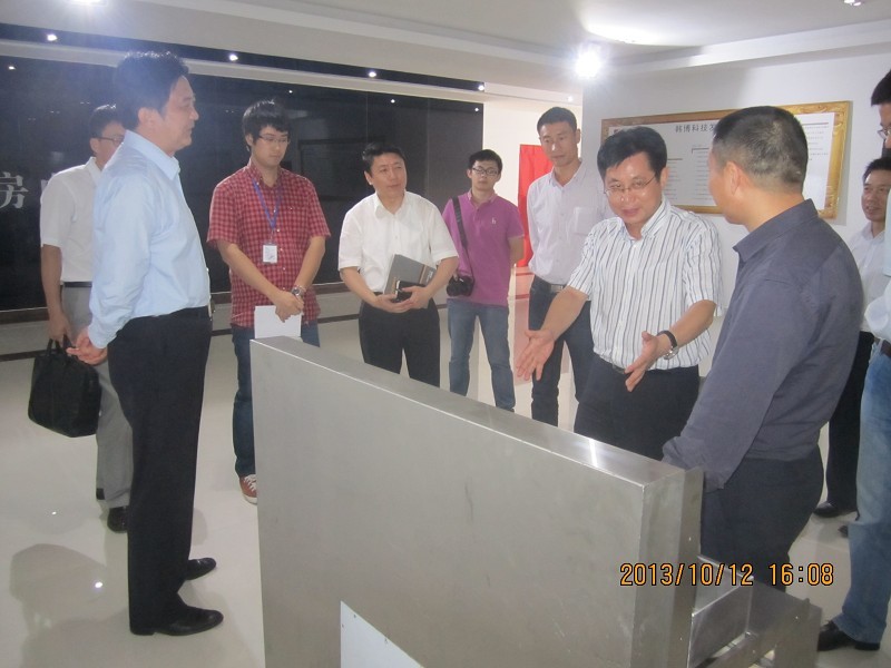 2013年10月12日下午兩時許,蘇州市徐明副市長陸偉躍秘書長越溪街道辦主任一行來韓博調研。在韓博董事長韓躍國、總經理侯鵬博、總工程師錢海榮的陪同下,徐副市長一行了解了韓博現在生產及銷售、以及未來發展方向的概況。在侯鵬博總經理的講解下,徐副市長對韓博